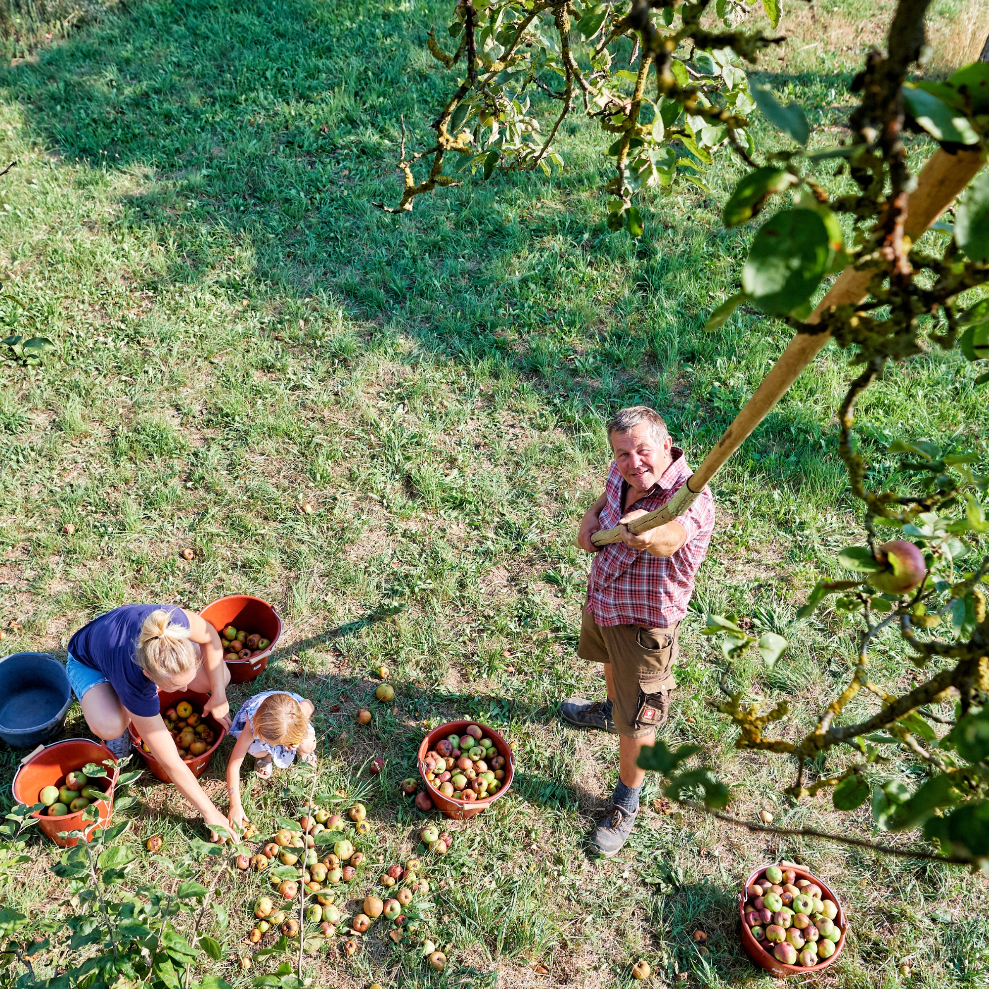 Unser Apfelbrand entsteht aus alten Apfelsorten von unserer Streuobstwiese mit Hochstammbäumen – so wie ihn schon Groß- und Urgroßvater gemacht haben. Die Bäume wachsen naturnah, ohne Plantagenanbau, und bieten Lebensraum für Steinkauz, Rotmilan sowie viele Insekten. Blühstreifen fördern zusätzlich die Artenvielfalt. Die Natur bestimmt den Ertrag – mal reichlich, mal weniger. Genau das macht unseren Apfelbrand so ehrlich und ursprünglich.